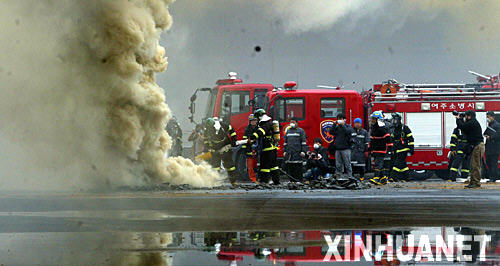 救火员正在韩国京畿道利川市的爆炸现场救援。据最新动静,救火员从爆炸现场抬出一具尸体。